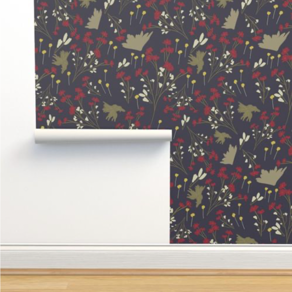 ▪︎ Wall Prep Note: Because the material has a slight translucency, dark walls may show through on some of my designs, making the ¼” overlap of the panels more visible – especially those designs with a lot of white or light colors. In that case, it is best to repaint the wall white before applying the wallpaper.