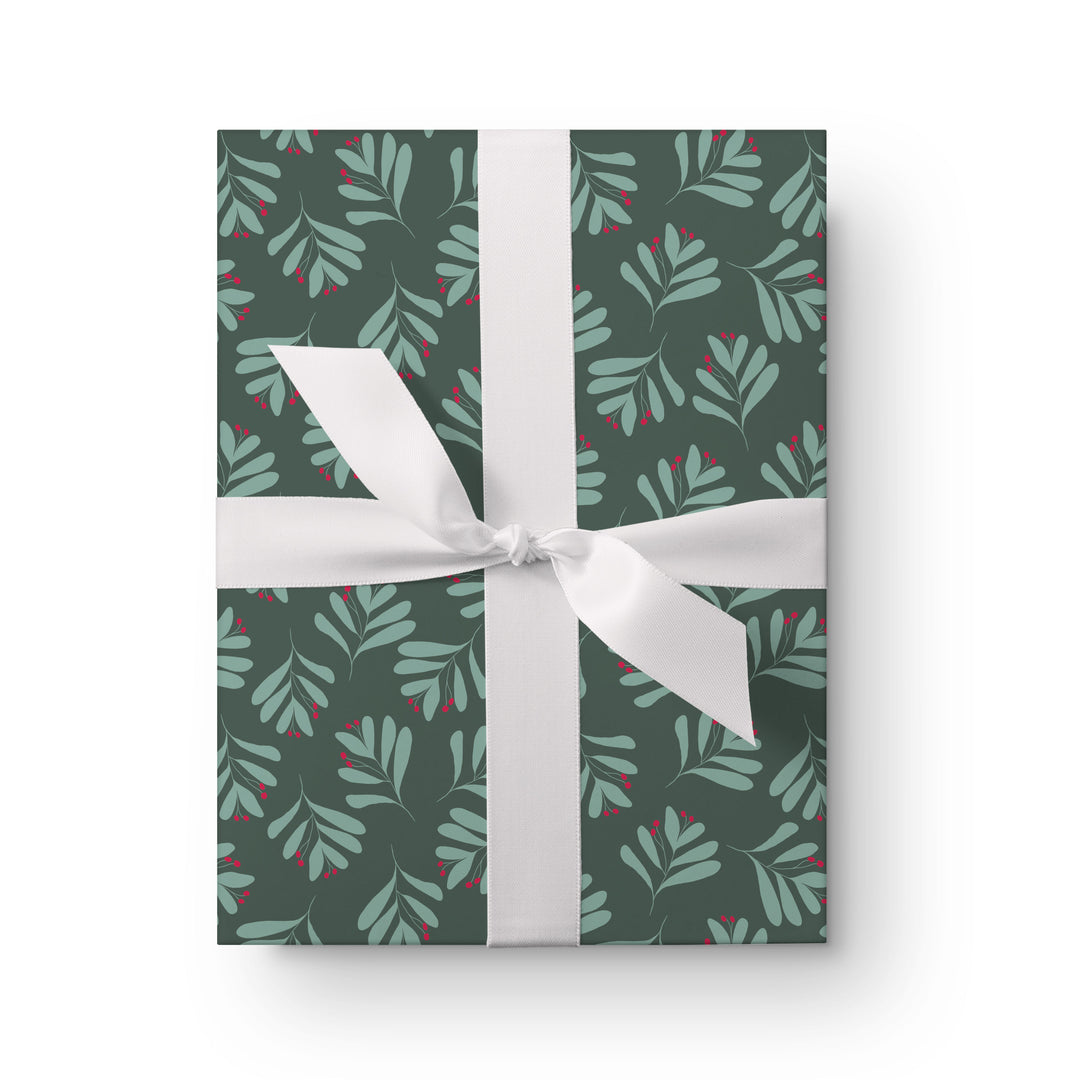 Christmas Berry Leaves in Green Wrapping Paper