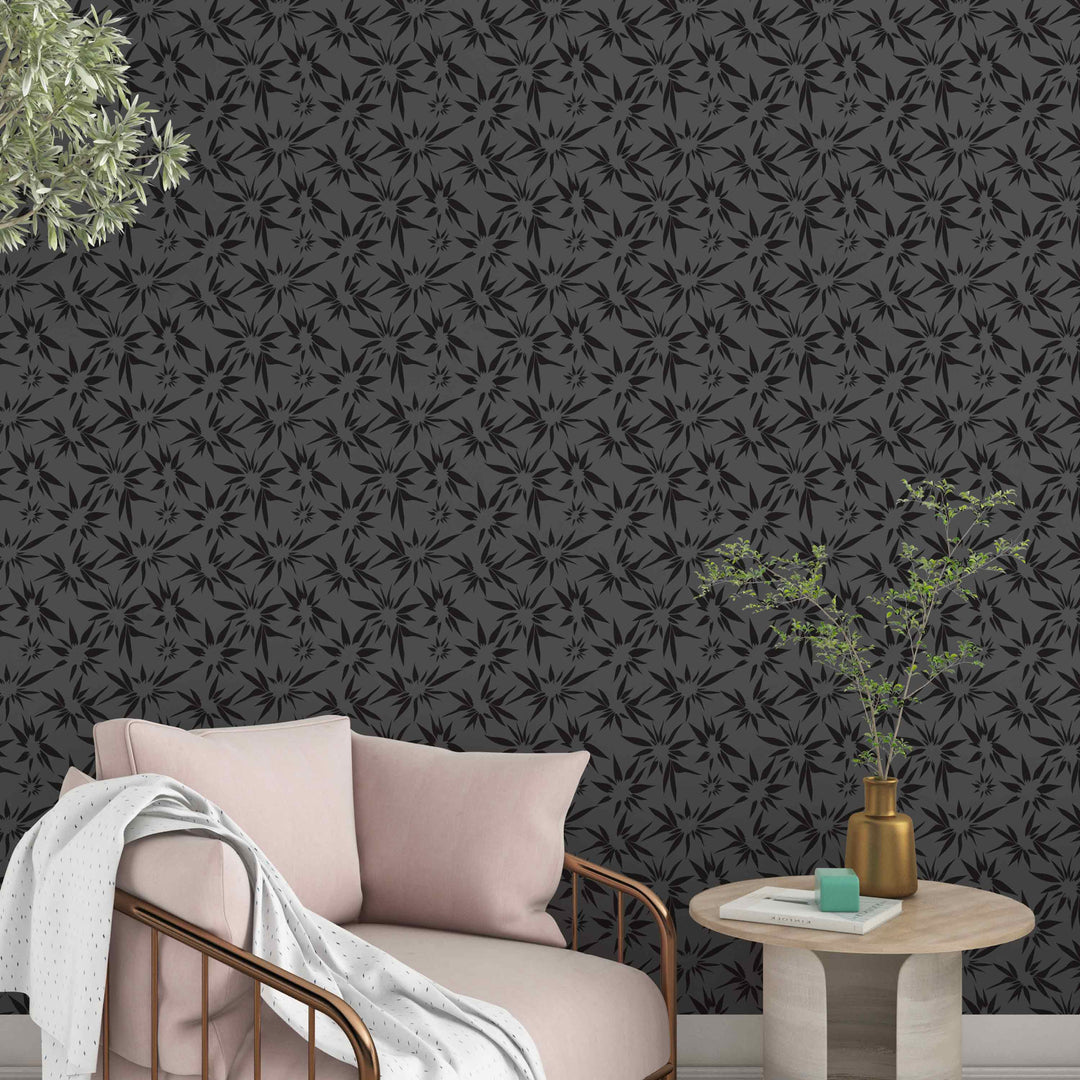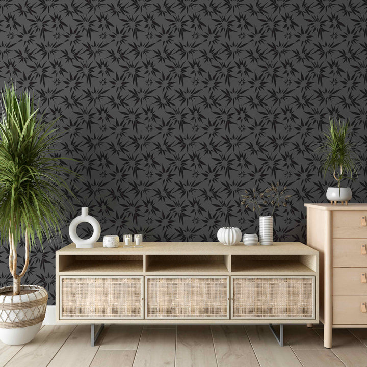 Gray and Black Cotton Weed Leaf Peel and Stick Wallpaper