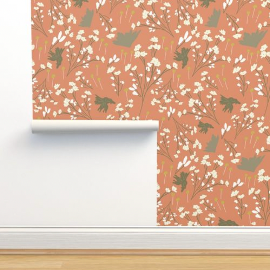 ▪︎ Wall Prep Note: Because the material has a slight translucency, dark walls may show through on some of my designs, making the ¼” overlap of the panels more visible – especially those designs with a lot of white or light colors. In that case, it is best to repaint the wall white before applying the wallpaper.