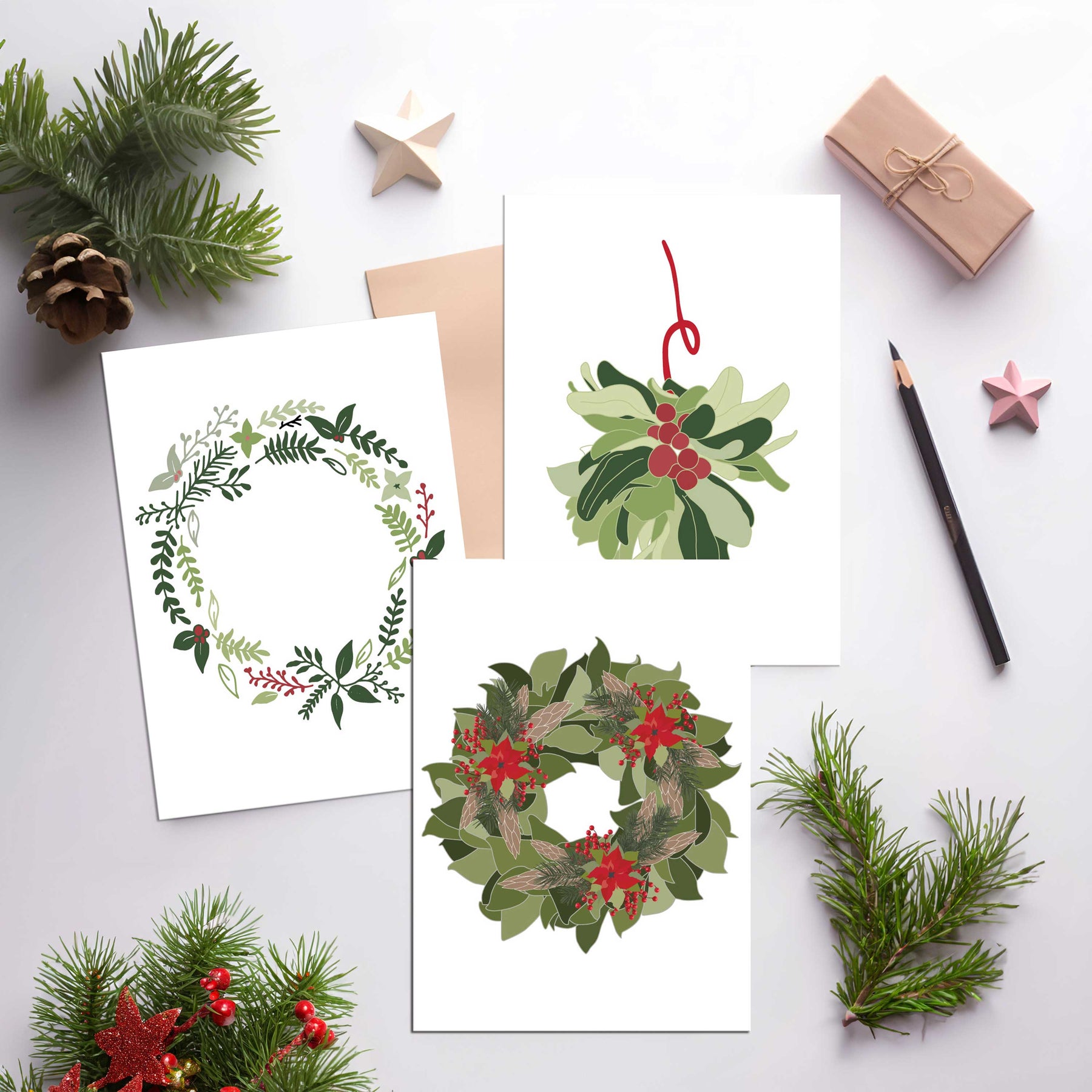 Our Holiday Greens Mini Print Set features three hand-drawn seasonal designs — a mistletoe sprig, a festive magnolia wreath, and a winter wreath — each one created as a gentle reminder of simple, meaningful beauty.